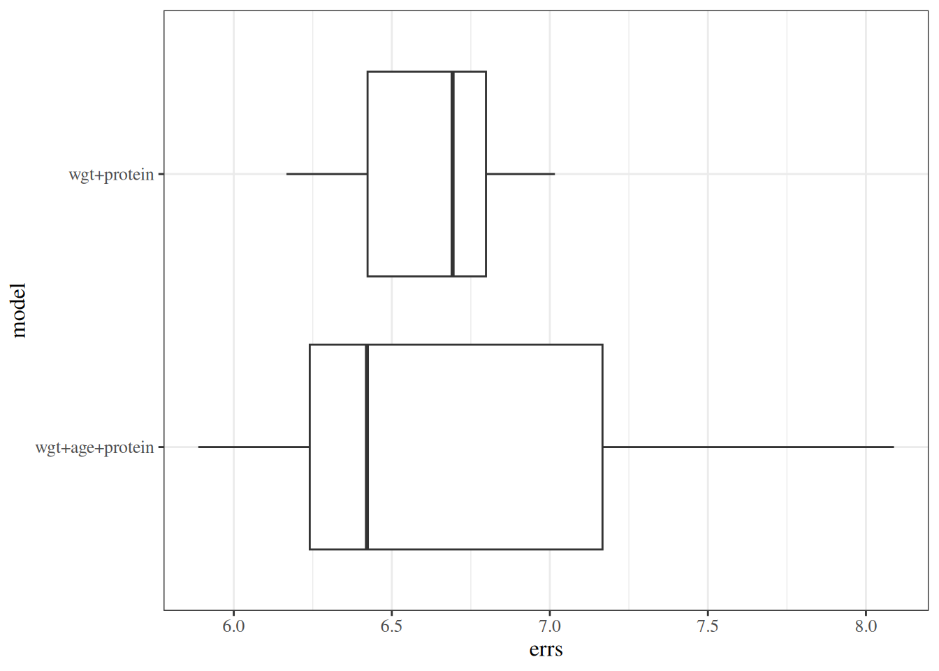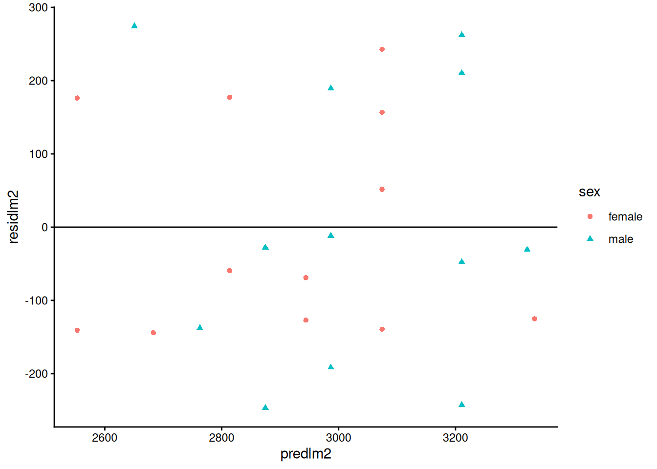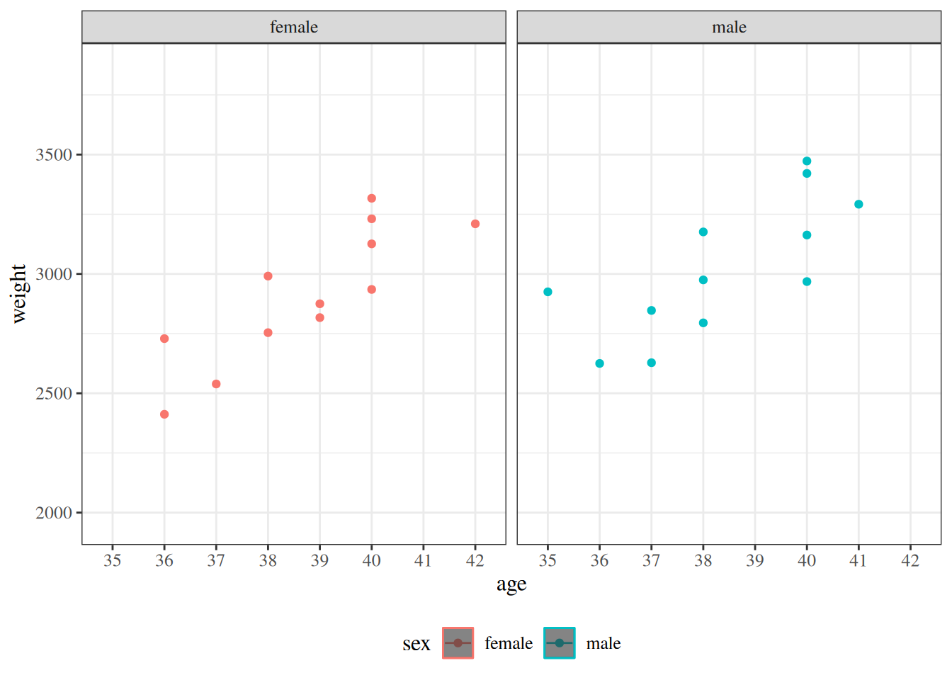 From Model 6, \(\gamma_0\) is the mean birthweight among females (\(M = 0\)) with \(A^* = 0\) (i.e., \(A = 32\) weeks):