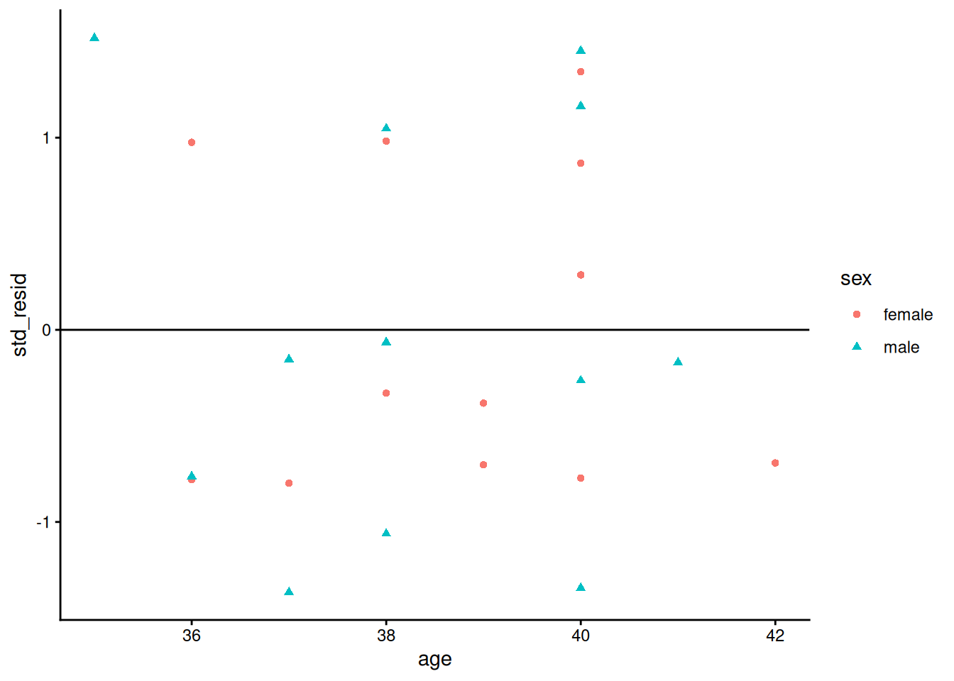 From Model 6, \(\gamma_{A^*M}\) is the difference in slope with respect to \(A^*\) between males and females: