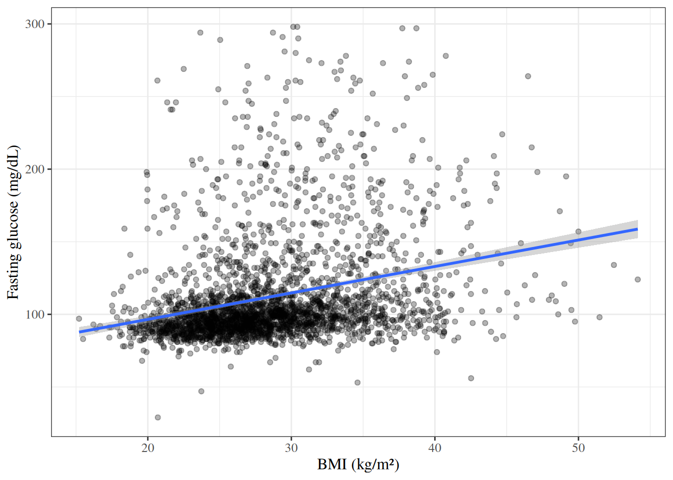 glucose ~ "Fasting glucose (mg/dL)",