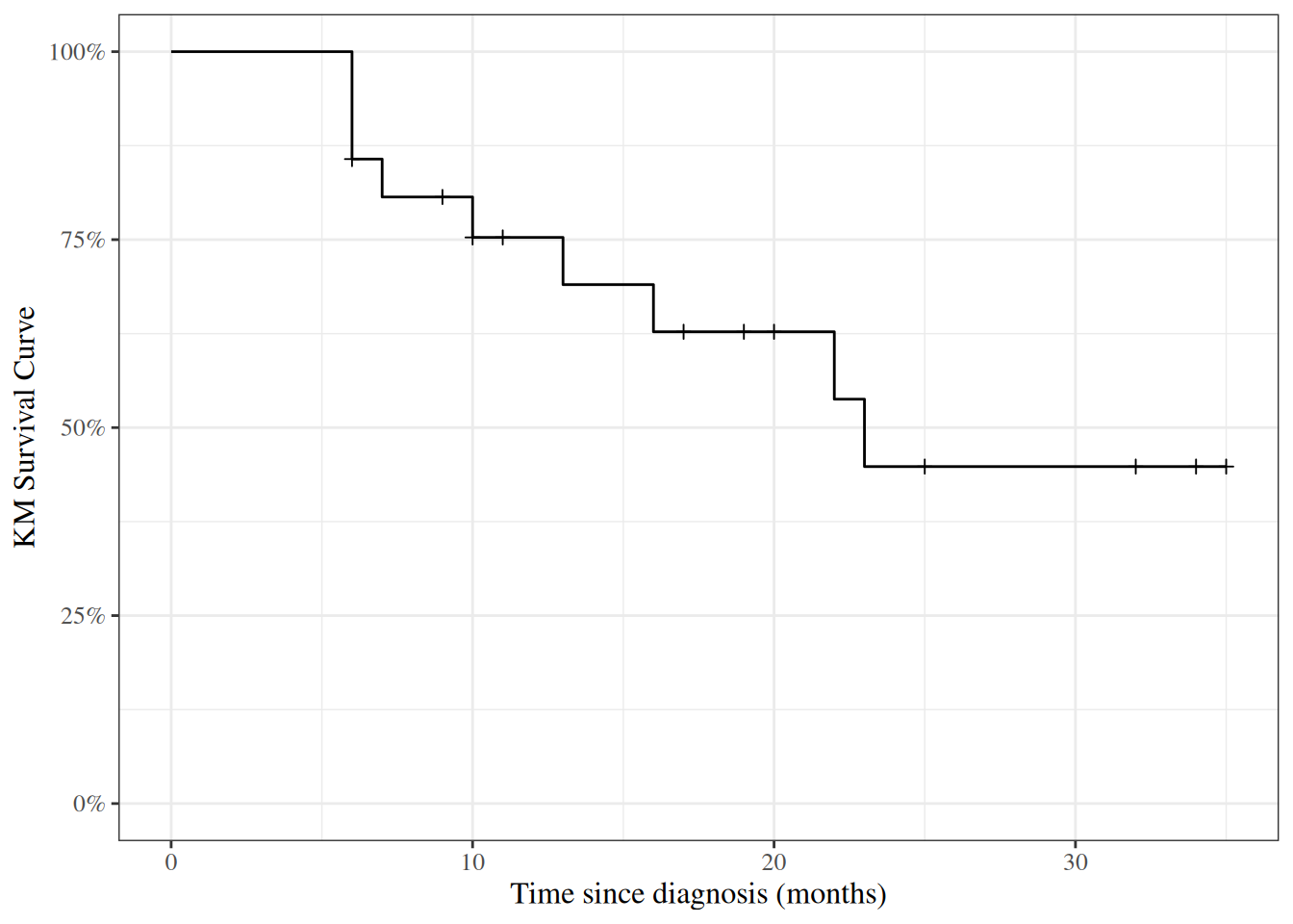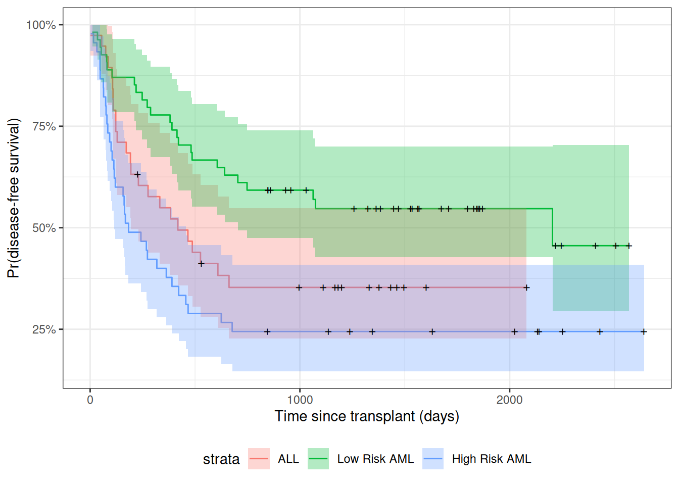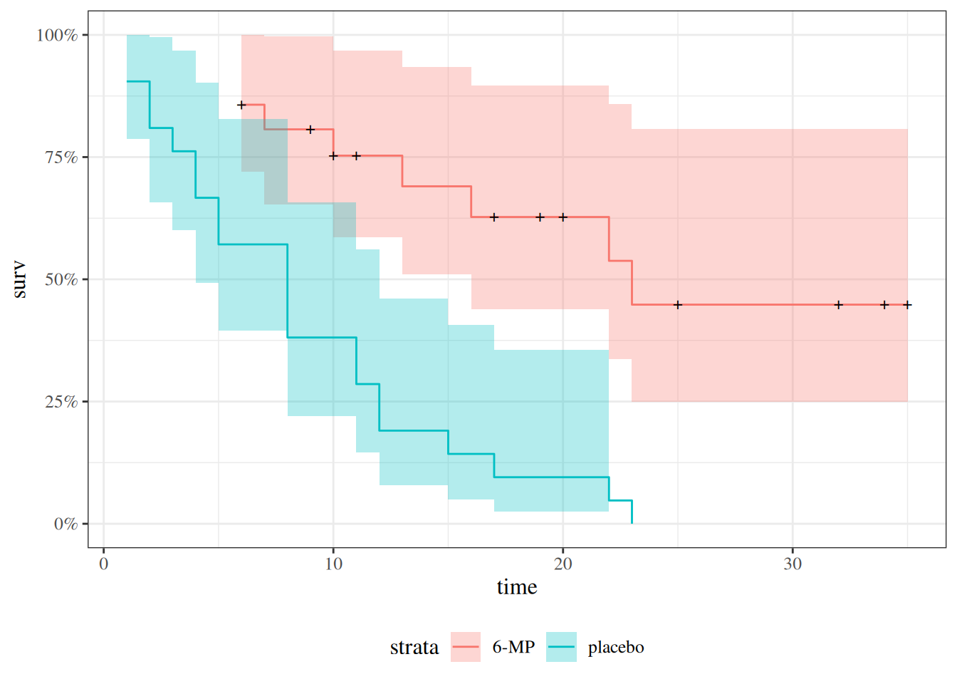 Let \(Y\) denote the time when observation ended (either by censoring or by the event of interest occurring), and let \(D\) be an indicator variable for the event occurring at \(Y\) (so \(D=0\) represents a censored observation and \(D=1\) represents an uncensored observation). In other words, let \(Y \stackrel{\text{def}}{=}\min(T,C)\) and \(D \stackrel{\text{def}}{=}\mathbb 1{\{T<=C\}}\).