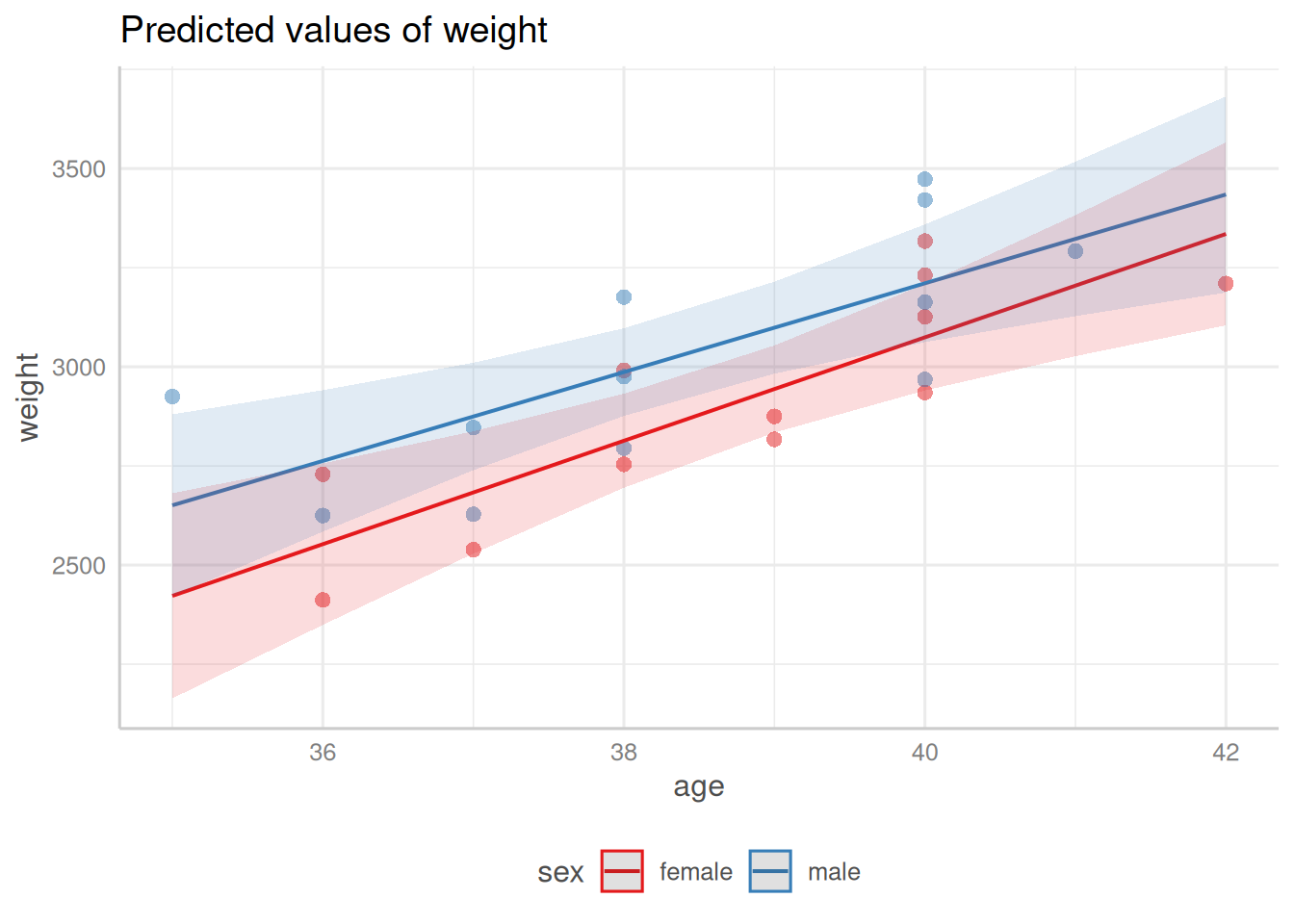 From Model 4, \(\gamma_0\) is the mean birthweight among females (\(M = 0\)) with \(A^* = 0\) (i.e., \(A = 32\) weeks):