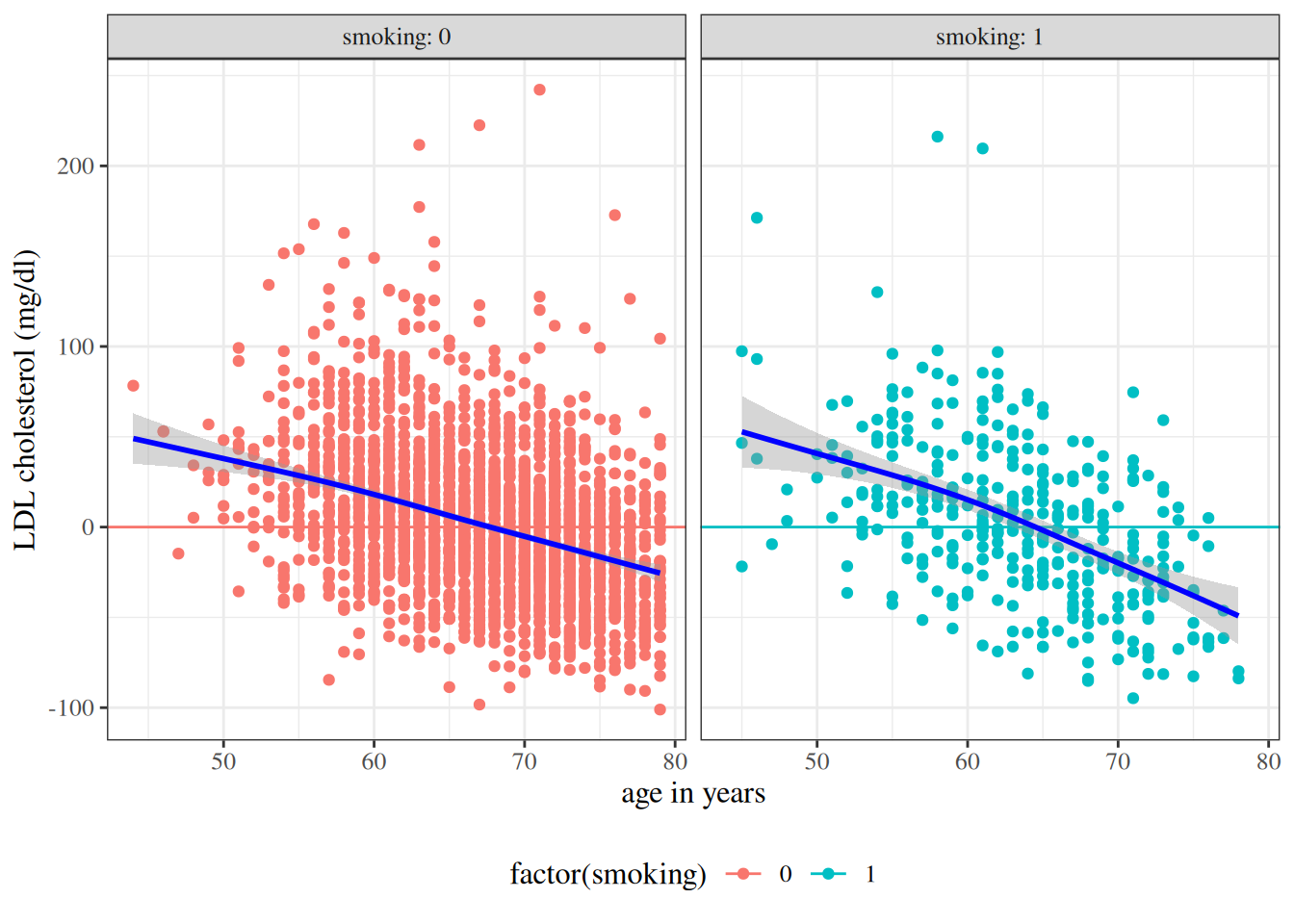 Since shifting \(A\) by a constant does not change slopes, \(\gamma_{A^*M} = \beta_{AM}\): these two coefficients have the same value and interpretation.