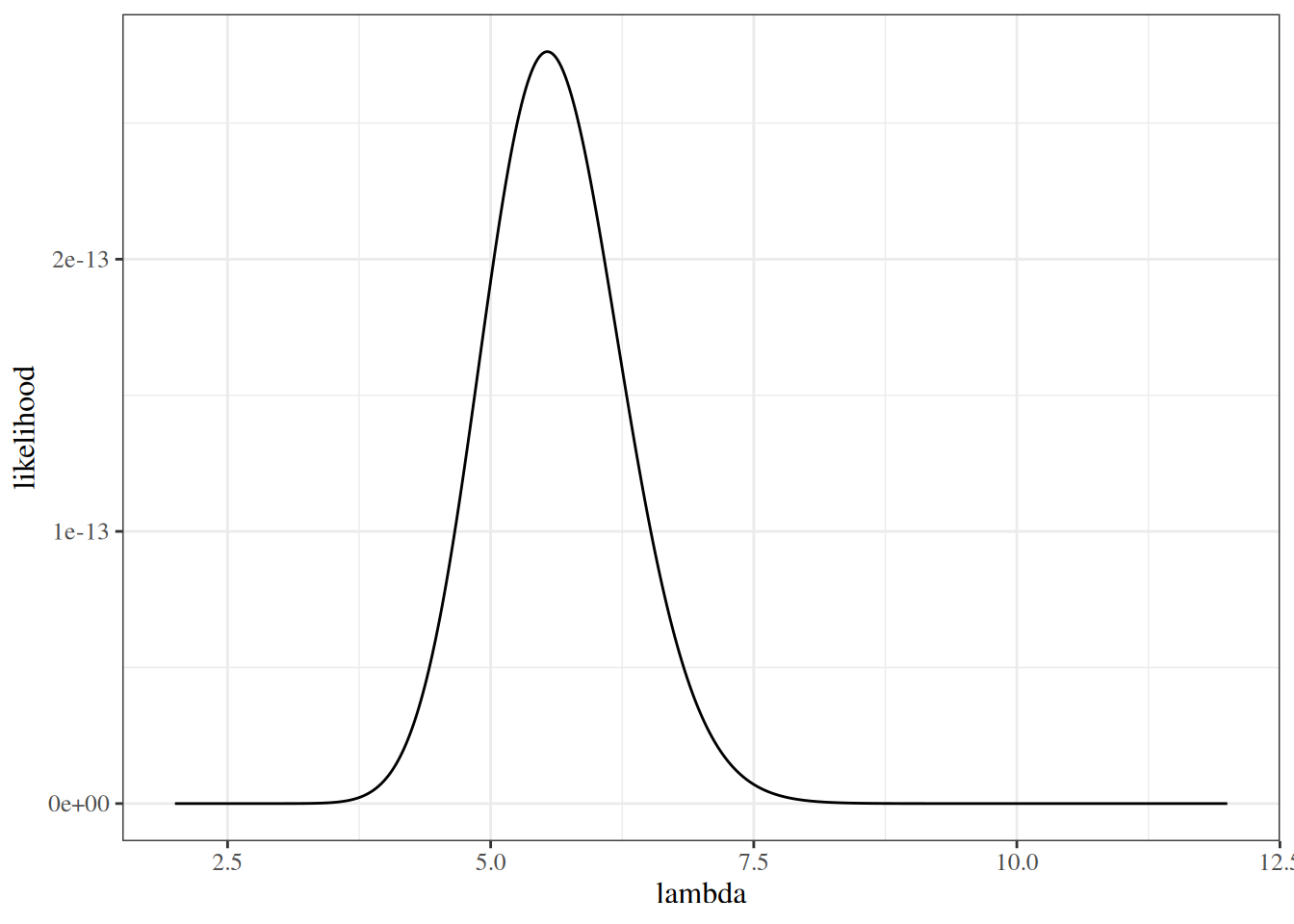 All of these notations mean the same thing. The parameter vector \(\theta\) is often listed first or solely, either to emphasize that we are interested in how this function varies with the parameters, given the data, or possibly to make the likelihood resemble the Bayesian posterior probability \(\text{p}(\theta | \tilde{x})\), hinting at the fact that if the prior probability \(\text{p}(\theta)\) is uniform over some finite parameter space, the posterior probability is proportional to the likelihood: