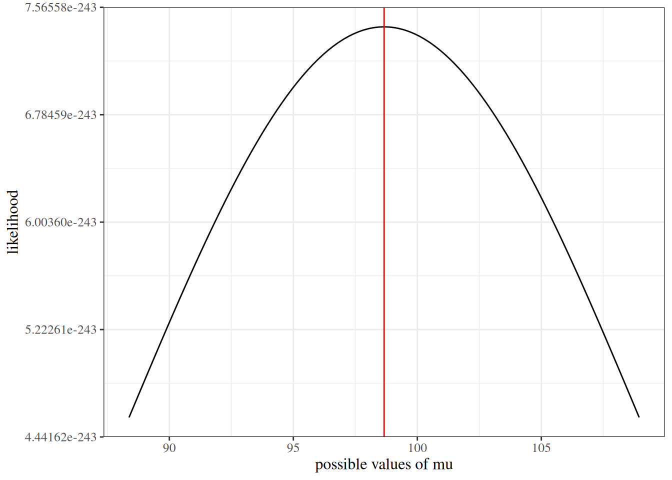 Definition 4 (Maximum likelihood estimate) The maximum likelihood estimate of a parameter vector \(\Theta\), denoted \(\hat\theta_{\text{ML}}\), is the value of \(\Theta\) that maximizes the likelihood: