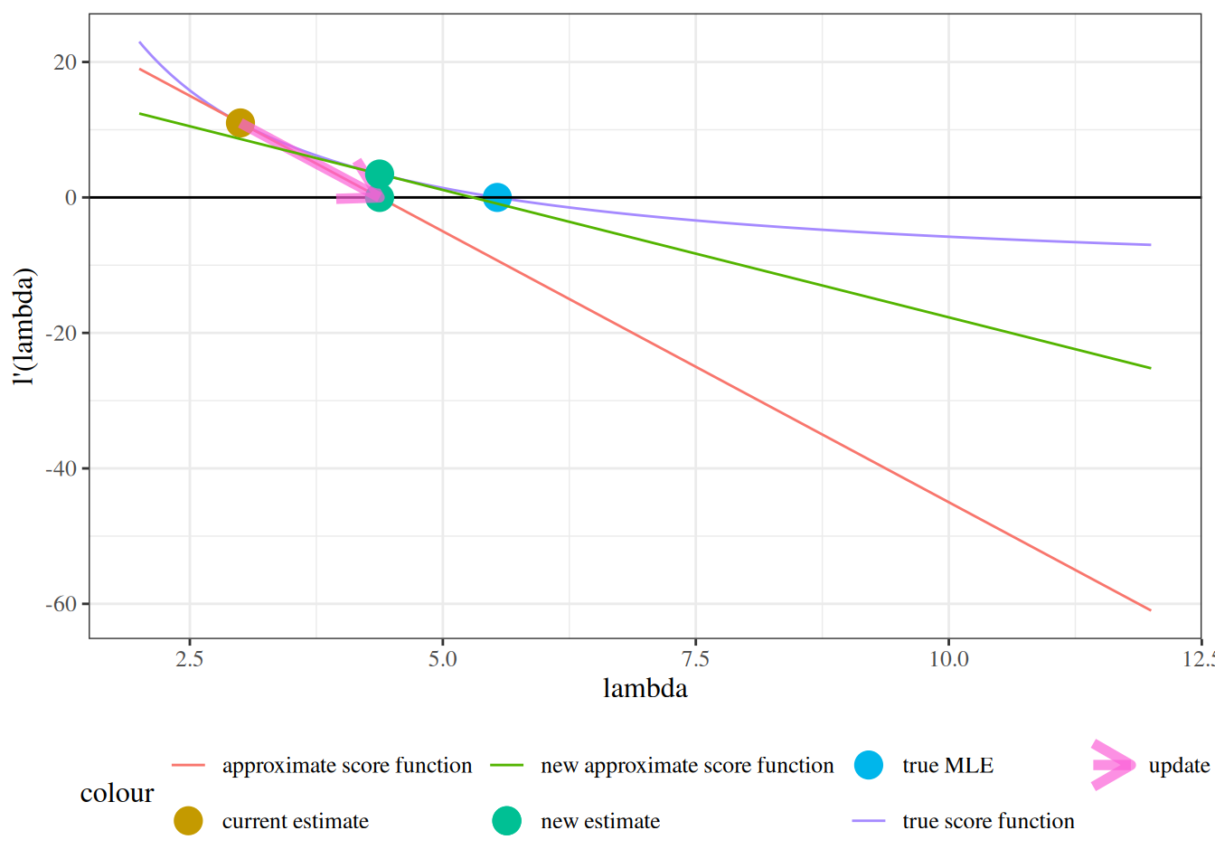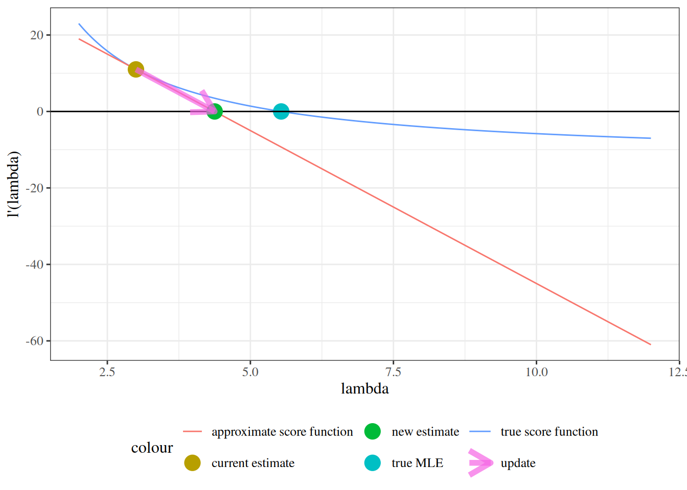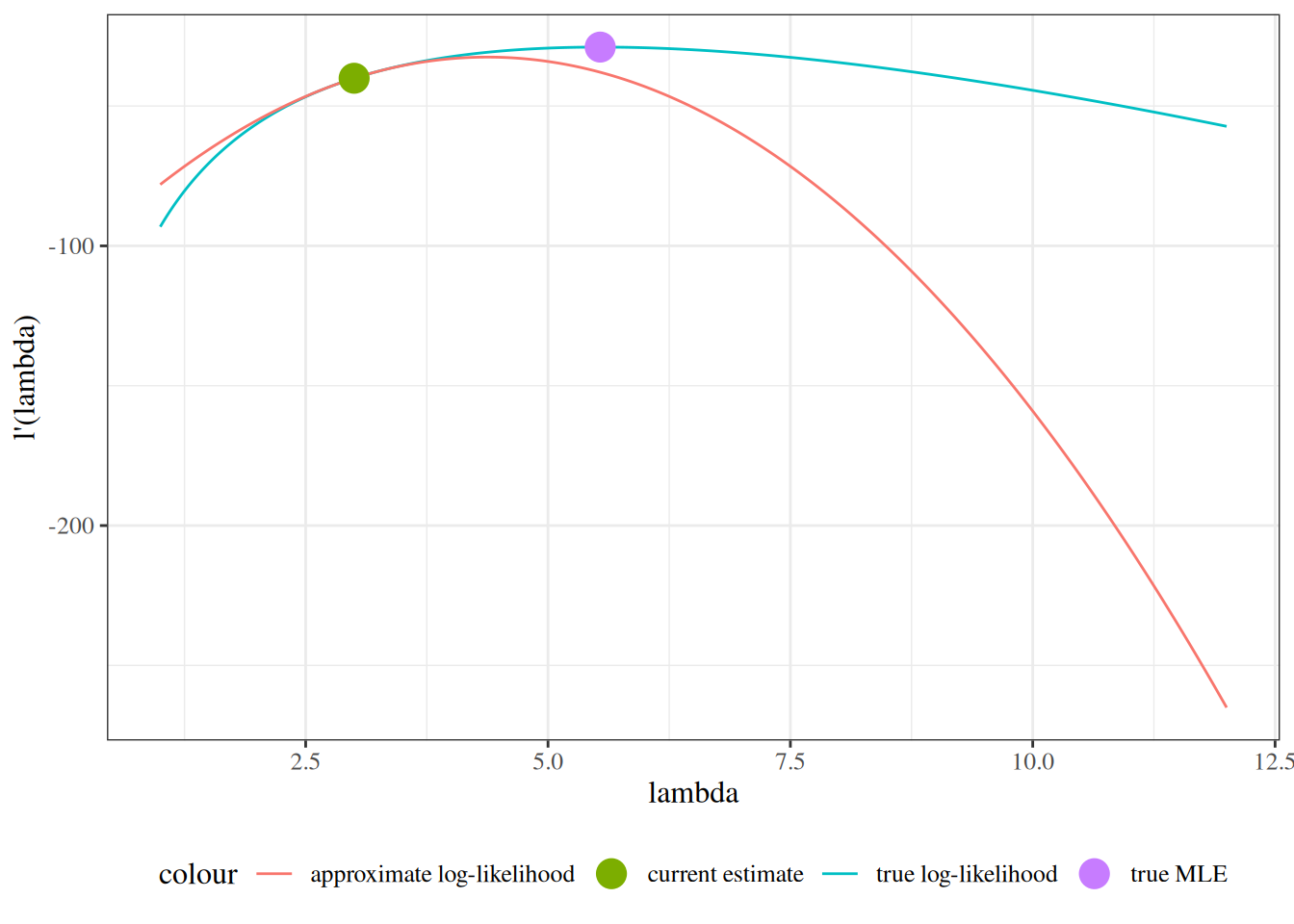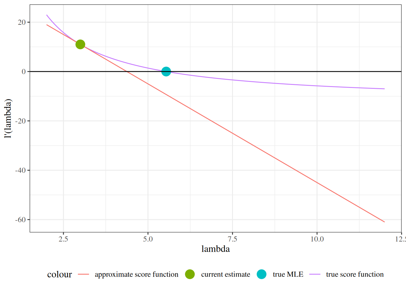 To find the maximizer(s) of the likelihood function, we need to solve \(\mathscr{L}'(\theta) = 0\) for \(\theta\). However, even for mutually independent data, we quickly run into a problem: